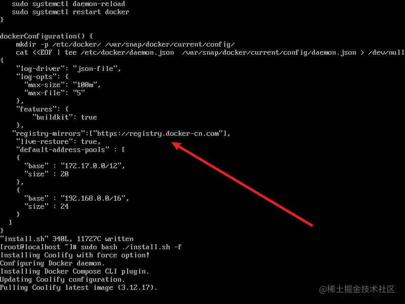 配置 Docker 镜像站,该脚本可以将 --registry-mirror 加入到你的 Docker 配置文件 /etc/docker/daemon.json 中。适用于 Ubuntu14.04、Debian、CentOS6 、CentOS7、Fedora、Arch Linux、openSUSE Leap 42.1,其他版本可能有细微不同。更多详情请访问文档。