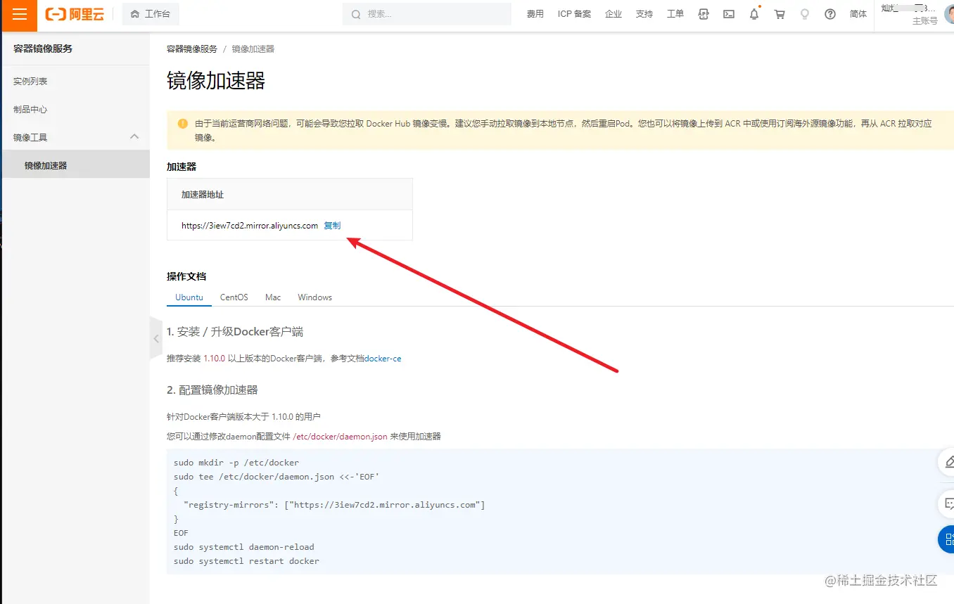 方案一:阿里云:搜索容器服务-镜像加速器