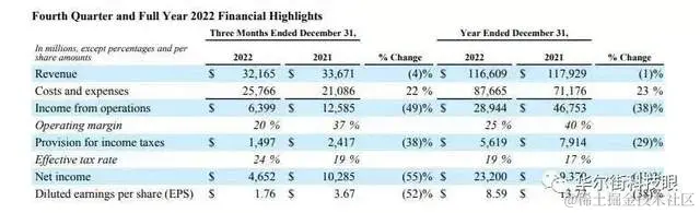 Meta第四季度净利润同比下降55%至46.52亿美元,连续五个季度下降;每股收益(EPS)1.76美元,同比下降52%,低于分析师预期的1.98美元。近十年以来,Meta这是首次出现连续五个季度净利润下降的情况。