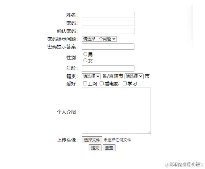 <input type="reset" value="重置">