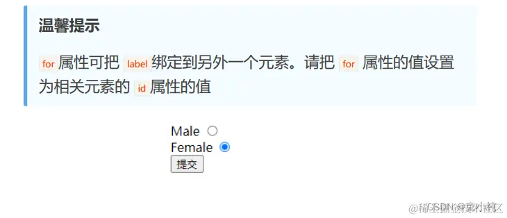 <label> 标签的 for 属性应当与相关元素的 id 属性相同