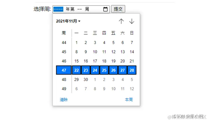 选择周: <input type="week" name="week_year">