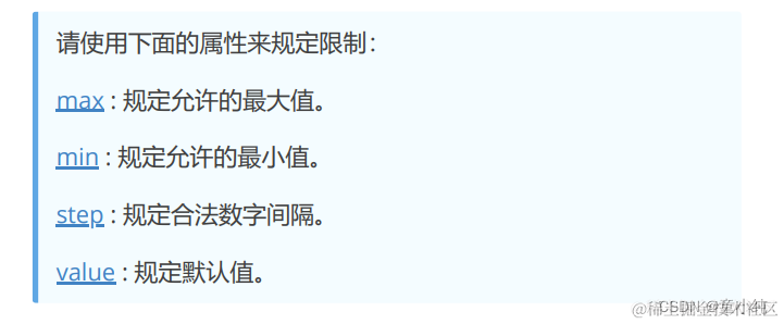 定义用于精确值不重要的输入数字的控件(比如 slider 控件)。您也可以设置可接受数字的限制