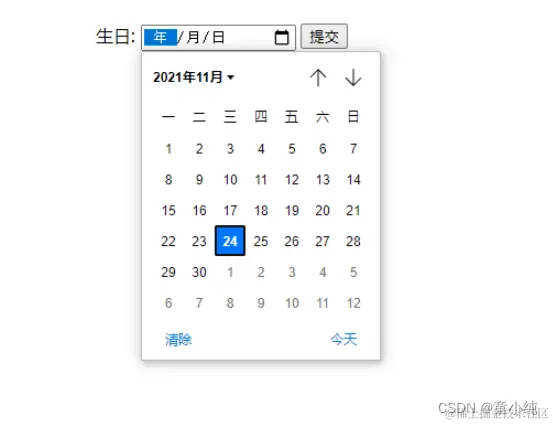 生日: <input type="date" name="bday">