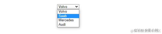 <form name="input" action="url" method="get"> ___ <option value="volvo">Volvo</option> <option value="saab">Saab</option> <option value="mercedes">Mercedes</option> <option value="audi">Audi</option> ___ </form>答案: