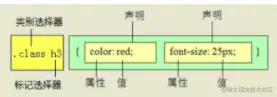 交集选择器由两个选择器构成,其中第一个为标签选择器,第二个为class选择器,两个选择器之间不能有空格,如h3.special。