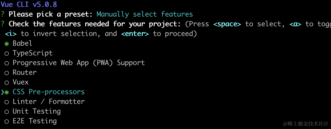 版本选择 vue3.x,选择scss,然后回车默认生成即可。