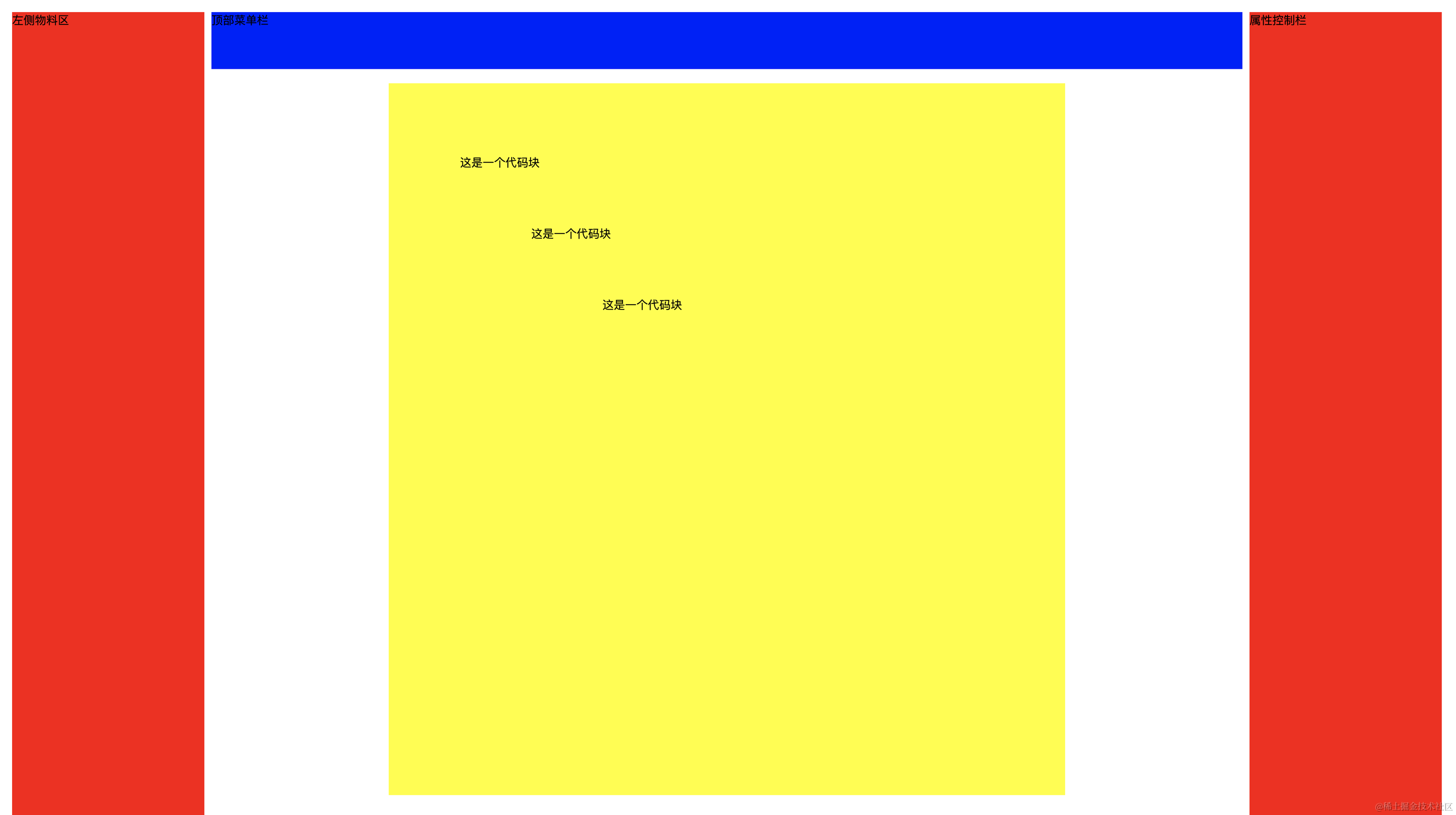 "blocks": [ // 拖拽生成的元素,有要渲染区的位置信息和层级,目前我们写死啦