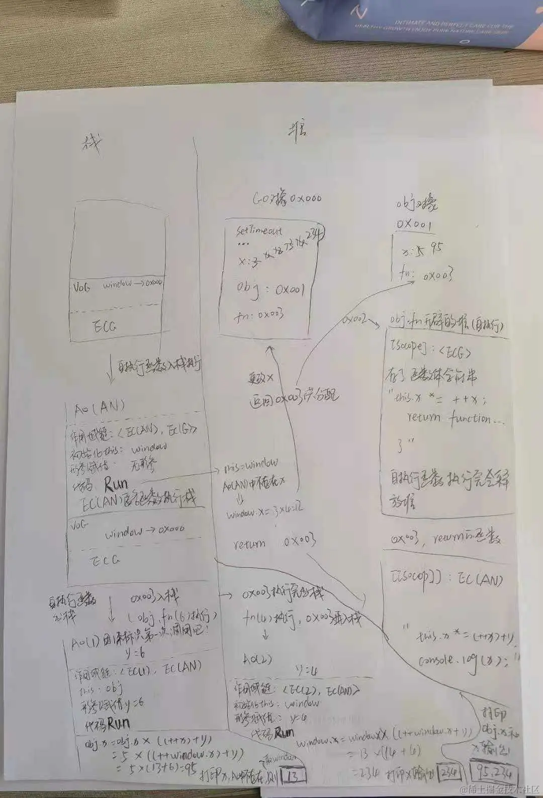 - 执行完毕后,存储函数执行体的堆内存会被释放掉,没有变量去接收(引用)函数,用完就丢,但是执行栈不一定释放,取决于自执行函数里有没有继续被引用,比如 return 一个函数被外部引用,则形成闭包。。