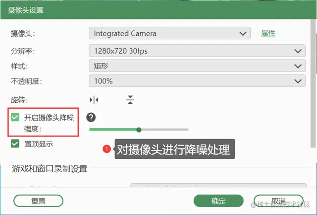 备注:如何录制效果更好的视频?使用麦克风时,点击【视频录制】页面右上角的【声音设置】可以对麦克风进行降噪和增强处理;点击【录制设置】,进入【设置】页面,点击【设置】页面左侧的【摄像头】可以对摄像头进行降噪处理。
