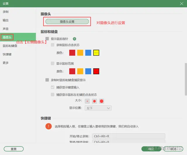**步骤3.**选择录制的范围,设置好摄像头,然后点击【录制】按钮,开始录制。