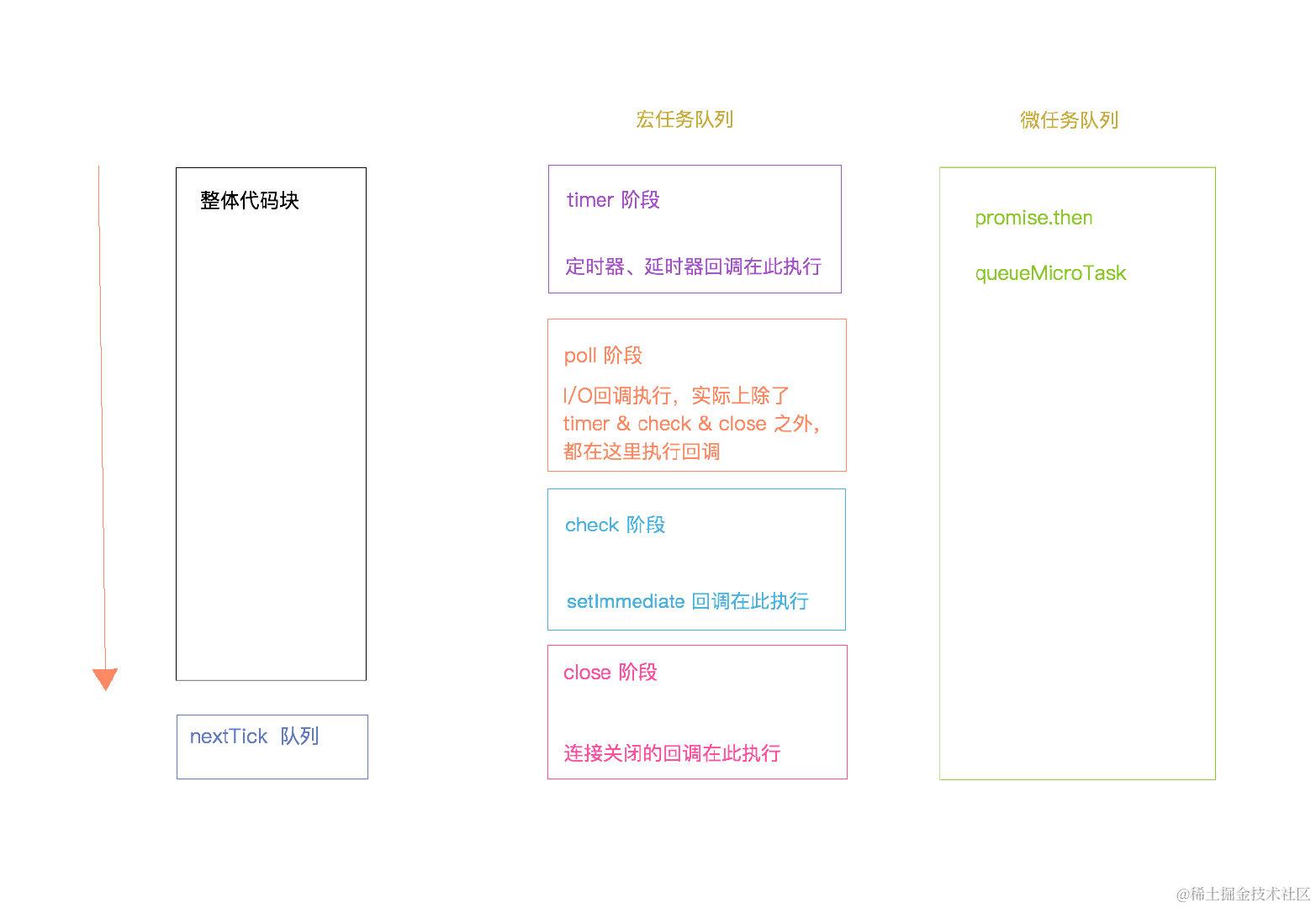- 浏览器宏任务只有一个队列,但是对于我们 node 而言,有6个阶段「队列」