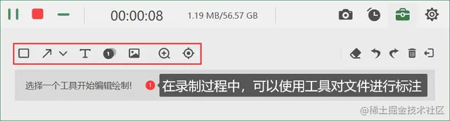 **第4步.**在录制过程中,您还可以使用辅助工具对PPT课件内容进行标注,录制结束后,进入预览页面。在此页面您可以查看刚刚录制的视频,还可以对视频进行简单剪辑或者高级剪辑,然后点击【完成】按钮,进入【录制历史】页面。