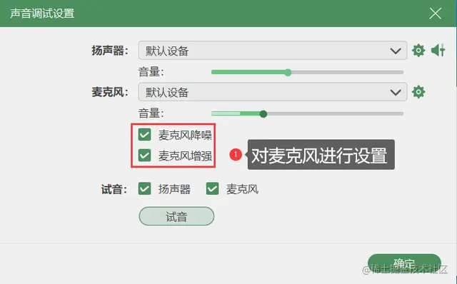 备注:如何录制更加清晰的声音?录制PPT课件时,想要录入老师的声音,需要开启麦克风,点击【视频录制】页面右上角的【声音设置】可以对麦克风进行降噪和增强处理。