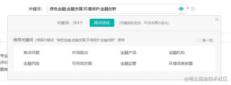 关键词一栏右边的小眼睛按钮可以推荐其他关键词;
