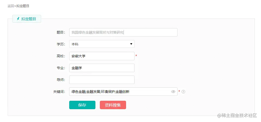 填入题目,点击下方的资料搜集