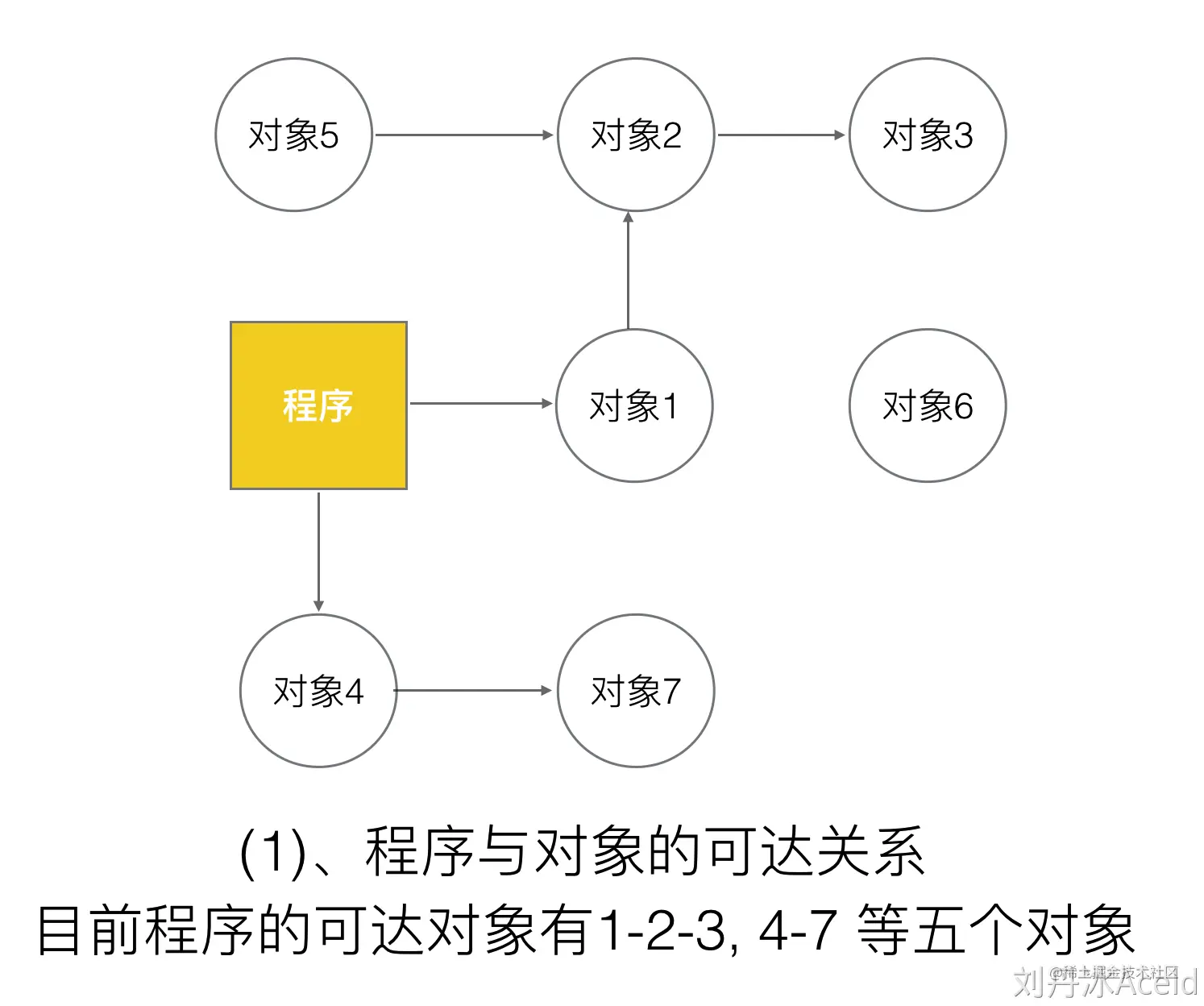 不足:回收进度低,一个对象即使被删除了最后一个指向它的指针也依旧可以活过当前这一轮,在下一轮GC中被清理掉