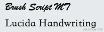 第四类,Cursive:草书字体,模仿人类的手写体。比如 Brush Script MT,Lucida Handwriting。