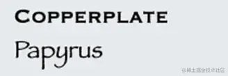 第五类,Fantasy:幻想字体,是装饰性、娱乐性字体。比如 Copperplate,Papyrus