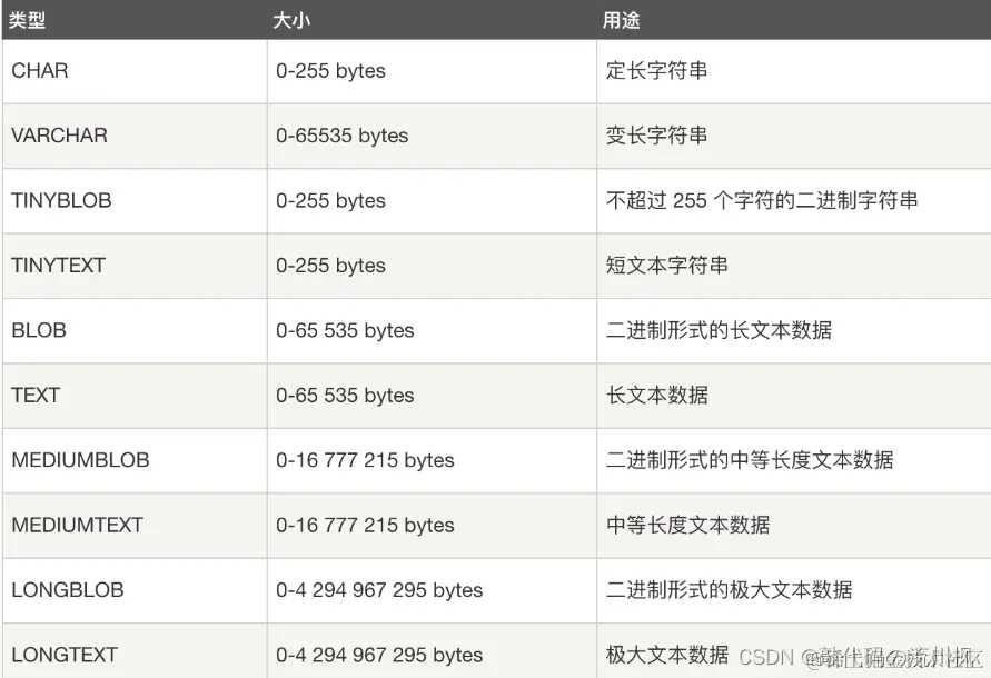 varchar(size): 字符串类型