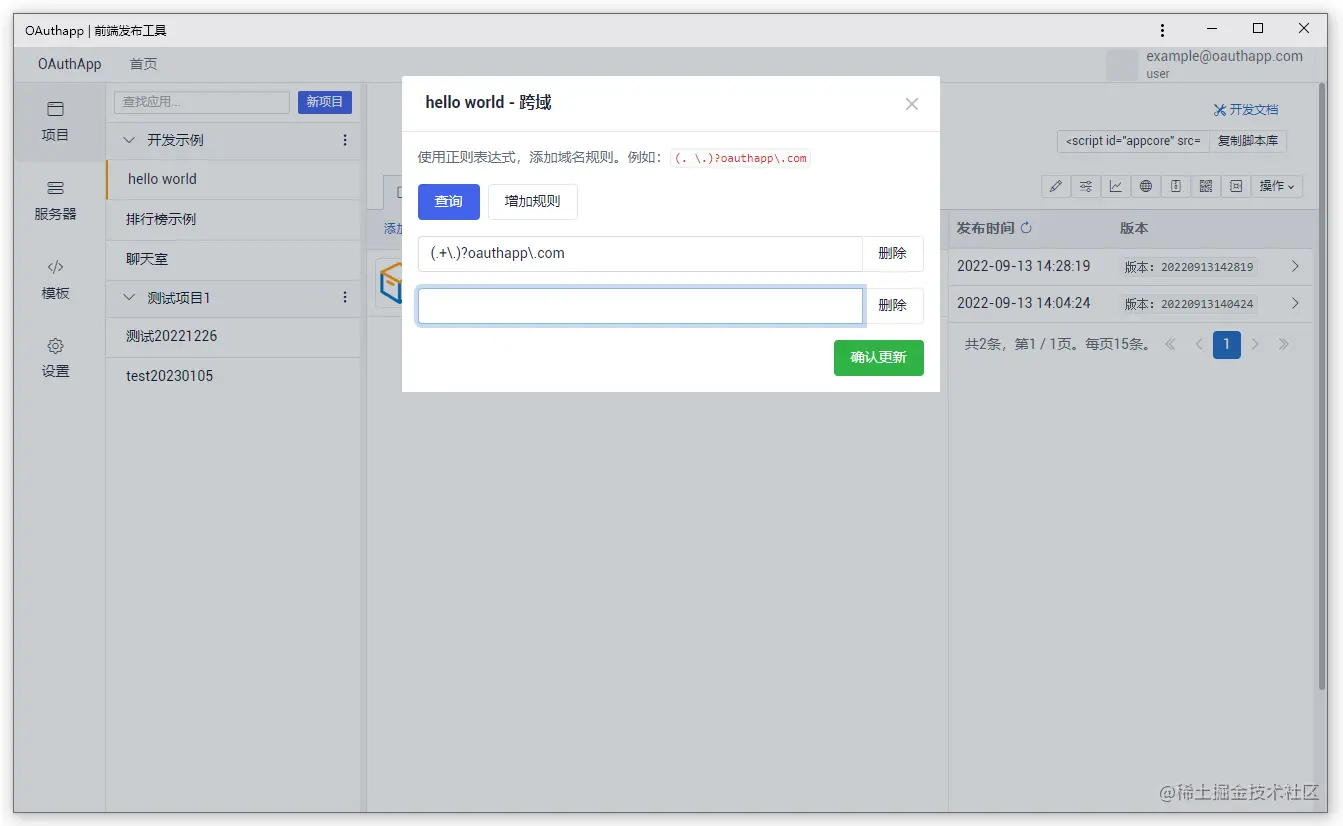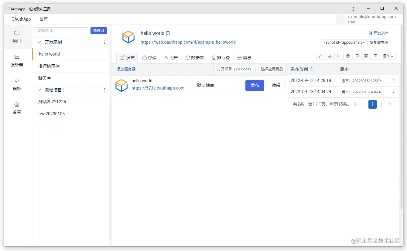 OAuthApp 是一个前端发布工具,用于快速开发前端网页项目,并发布到服务器。