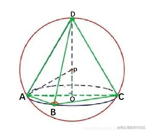 P为正三棱锥内部的中心,PA,PD为正三棱锥外接球半径,OP为正三棱锥内切球半径