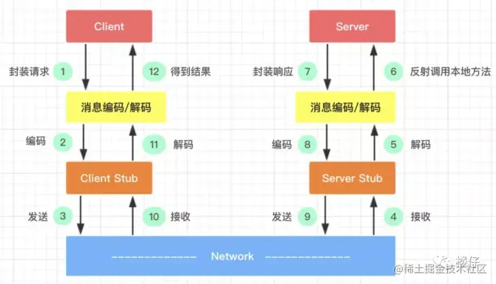下面的图很清晰新的展示了rpc框架的运行轨迹: