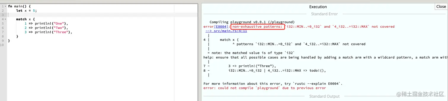 因为没有默认匹配条件 _ => println!("Something else"),Rust 编译报错。