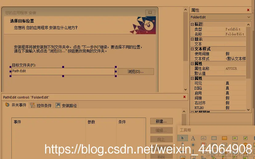 Advanced Installer设置安装到我们指定的路径且不允许修改 步_步_为营 2023-02-03 586 阅读1分钟 首先在属性下新建属性 值为目标路径,名称随意,点击确定 选择对话框中的textbox,增加开关事件 属性值为Textbox属性名称,在右侧属性栏中可以看到 设置好默认参数 此时仅仅是设置了默认参数,但是textbox中的路径是可以更改的,将textbox只读属性设置为false 增加控制条件,将textbox的操作设置为Diable 如果不想出现浏览按钮,可以直接选中删除