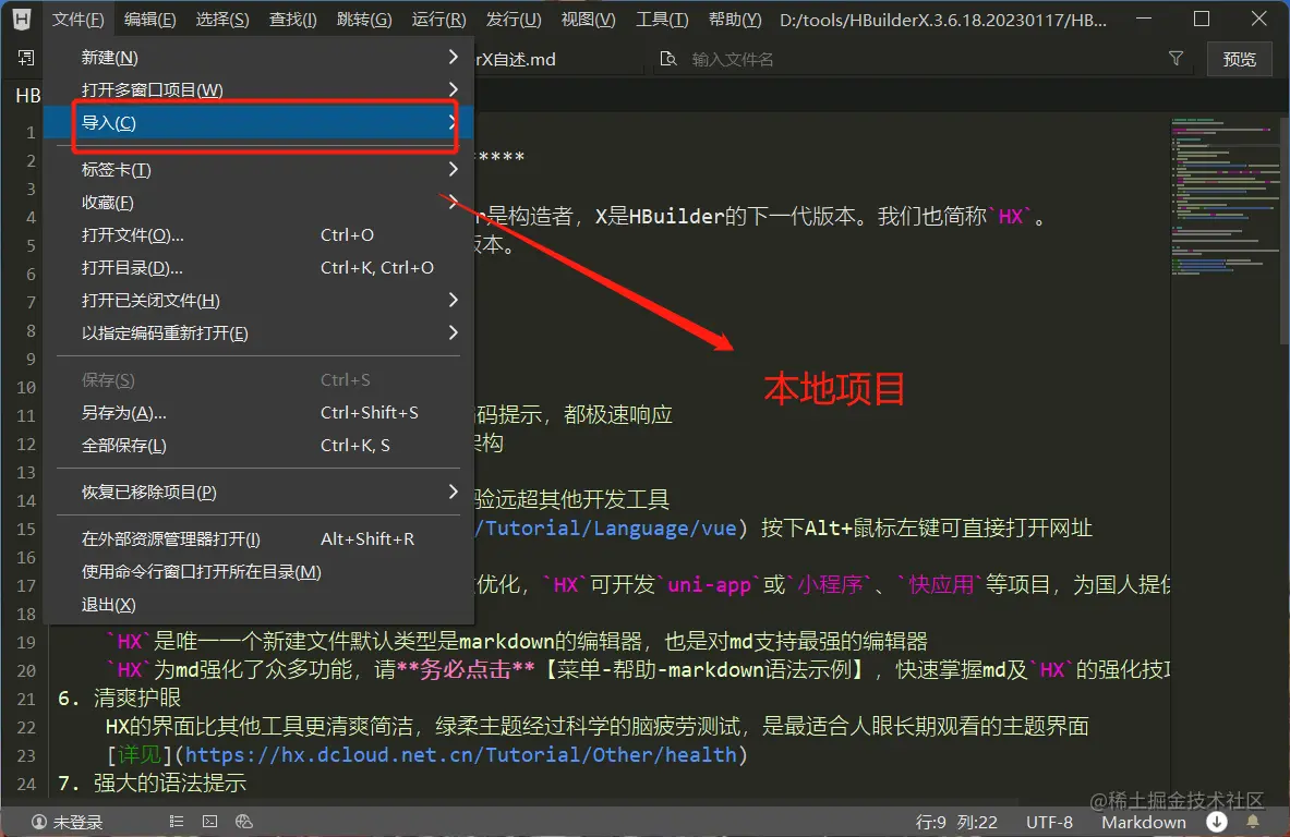 第七步,这里小编简单地演示下,我选择导入,然后选择本地项目