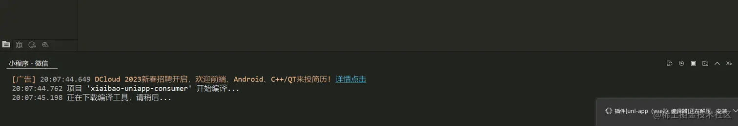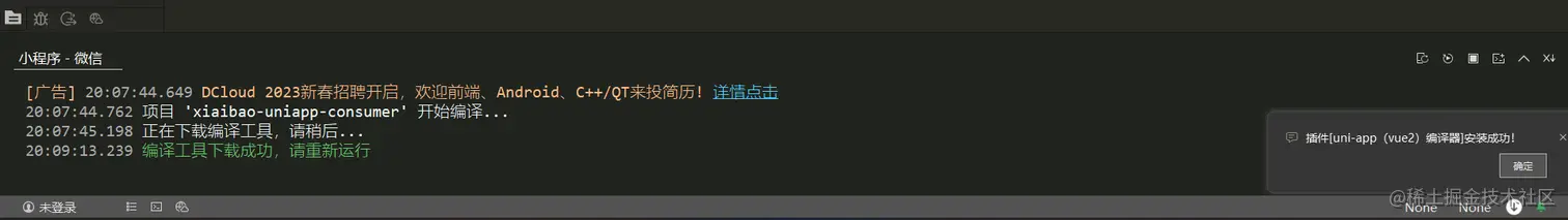 你看到了么,DCloud公司有个春招的广告,然后开始进行下载软件相关的编译工具了。