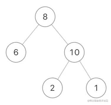 不分行从上往下打印出二叉树的每个节点,同层节点从左至右打印。例如输入{8,6,10,#,#,2,1},如以下图中的示例二叉树,则依次打印8,6,10,2,1(空节点不打印,跳过),请你将打印的结果存放到一个数组里面,返回。