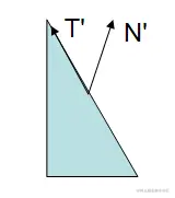 之所以法线不能直接使用 UNITY_MATRIX_MV 进行变换,是因为法线是向量,具有方向,在进行空间变换的时候,如果发生 非等比 缩放,方向会发生偏移。为什么呢?举个栗子,我们可以简单的把法线和切线当成三角形的两条边,显然,三角形在空间变换的时候,不管是平移,还是旋转,或者是 等比 缩放,都不会变形,但是如果 非等比 缩放,就会发生拉伸。所以法线和切线的夹角也就会发生变化。(而切线在变换前后,方向总是正确的,所以法线方向就不正确了)。下图,T、T'是切线,N、N' 是法线