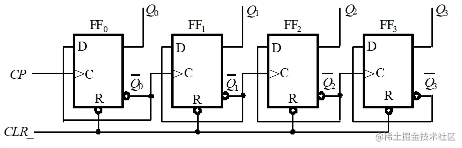 4位异步二进制计数器逻辑图