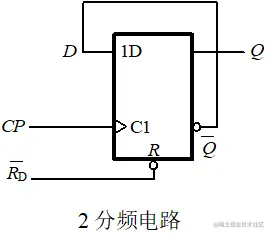总之,在不考虑清零信号Rd_的作用时,每当CP上升沿到来时,触发器状态Q翻转一次。输出信号Q的频率正好是CP频率的二分之一,故称该电路为2分频电路。所谓分频电路,是指可将输入的高频信号变为低频信号输出的电路。