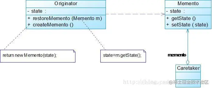 (3)其他对象:不可访问也不可以保存,它只负责接收从负责人那里传递过来的备忘录同时恢复原发器的状态。