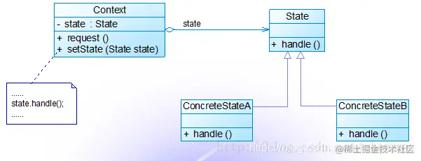 状态模式的UML结构图如下: