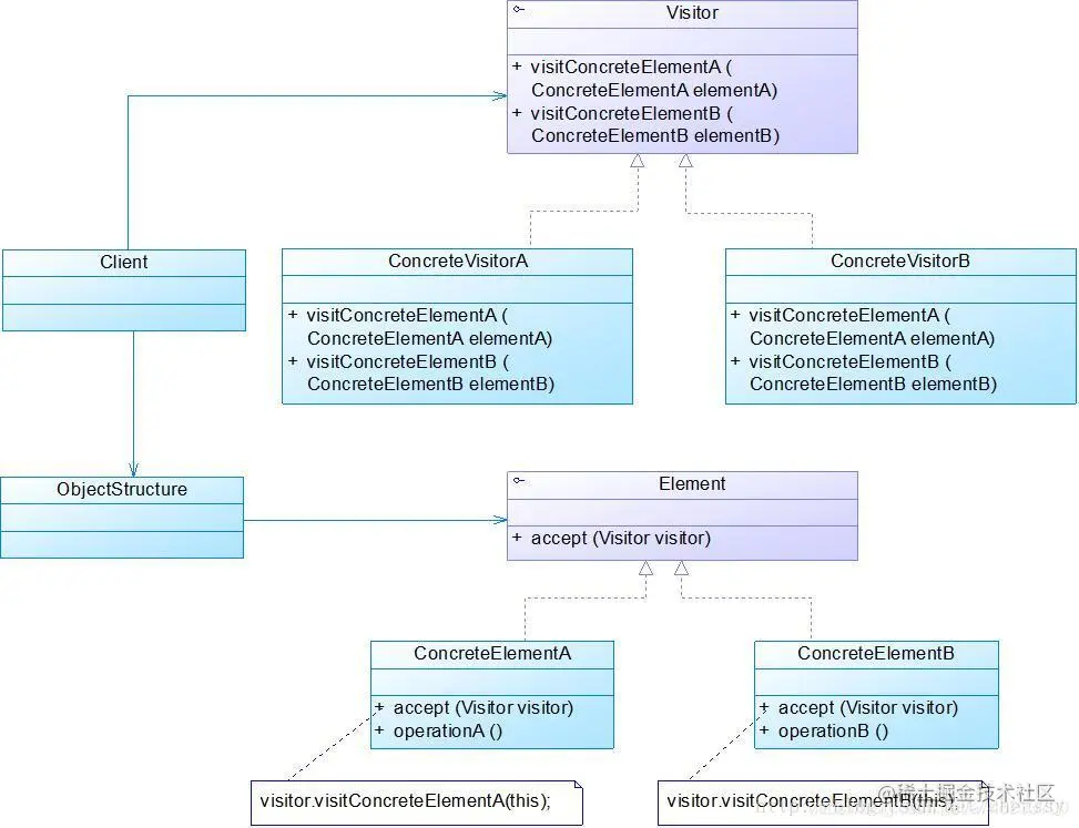访问者模式的UML结构图如下: