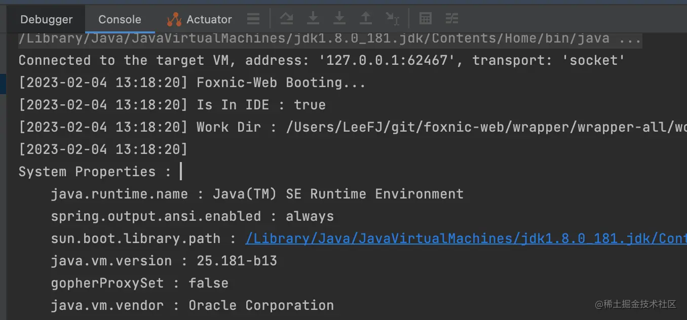 系统参数即通过 System.getProperties() 方法可以获得的参数清单,此处不作展开。Foxnic-Web 的应用会在启动时输出这些系统参数: