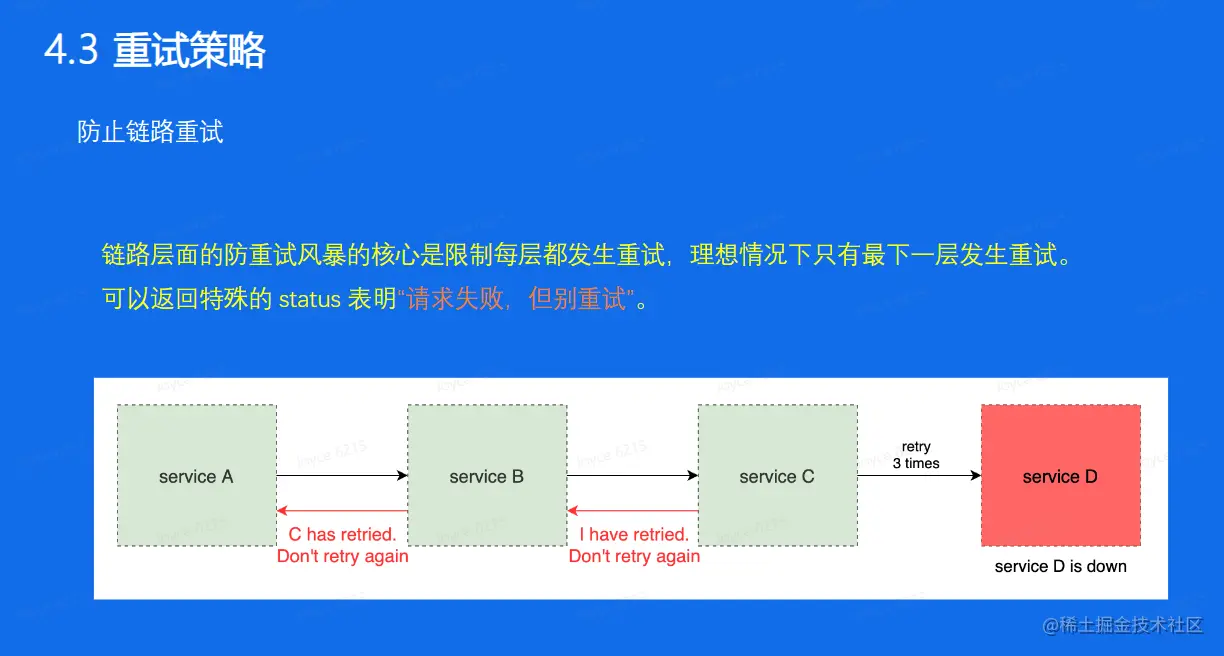 - 字节跳动重试组件能够极大限制重试发生的链路放大效应