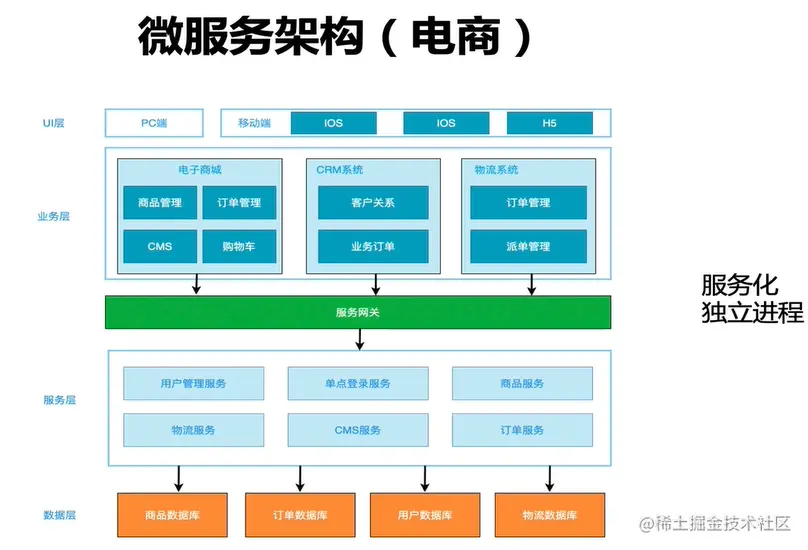 每个服务都在自己的进程中运行,并使用轻量级的通信机制(通常