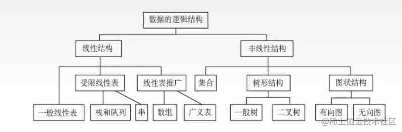 - 数据的逻辑结构分为线性结构和非线性结构