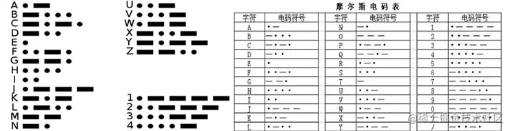 1827年,世界第一条电报诞生,当时美国科学家摩尔斯尝试用一些“点”、“划”来表示不同字母、数字、标点符号,这套表示字符的方式就是大名鼎鼎的“摩尔斯电码”。