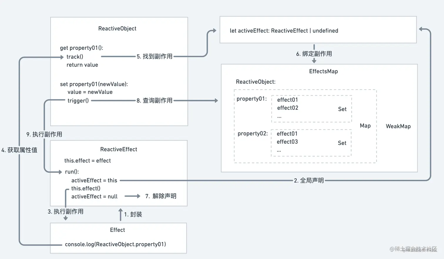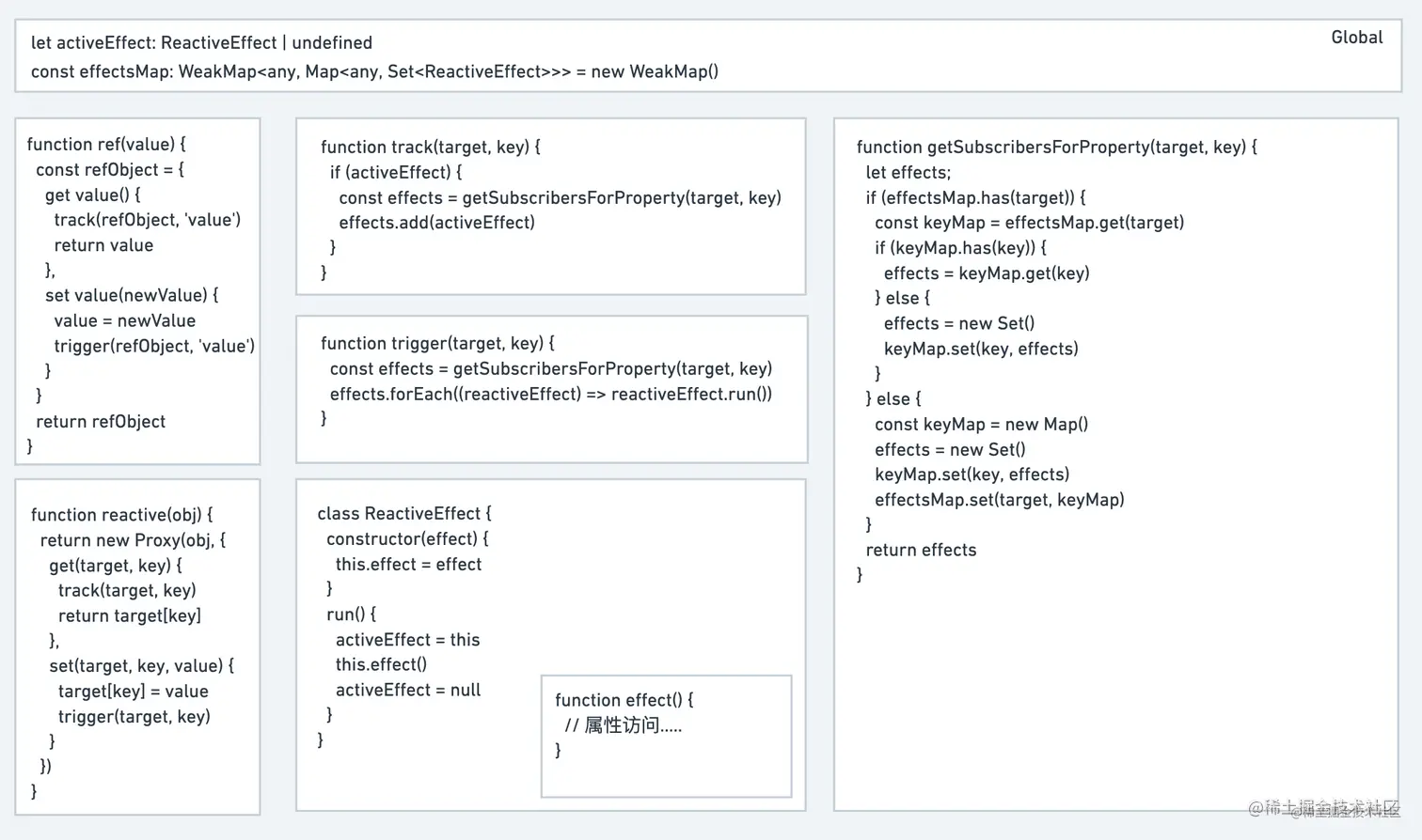 activeEffect来代替,即track函数每次收集activeEffect指向的函数即可 - 然后通过