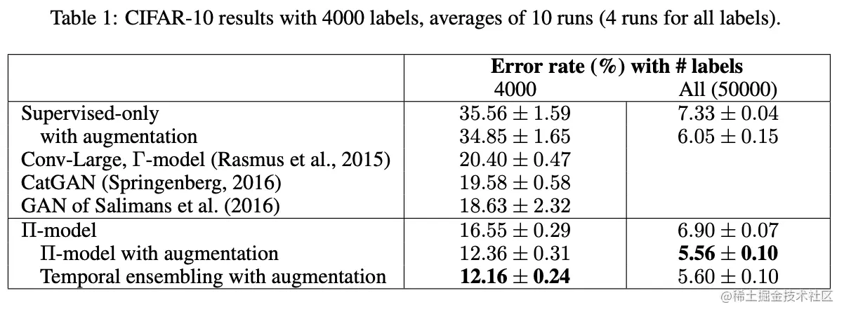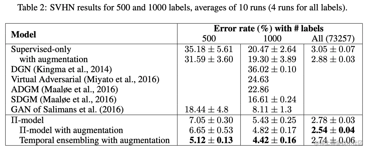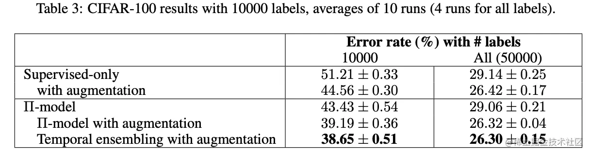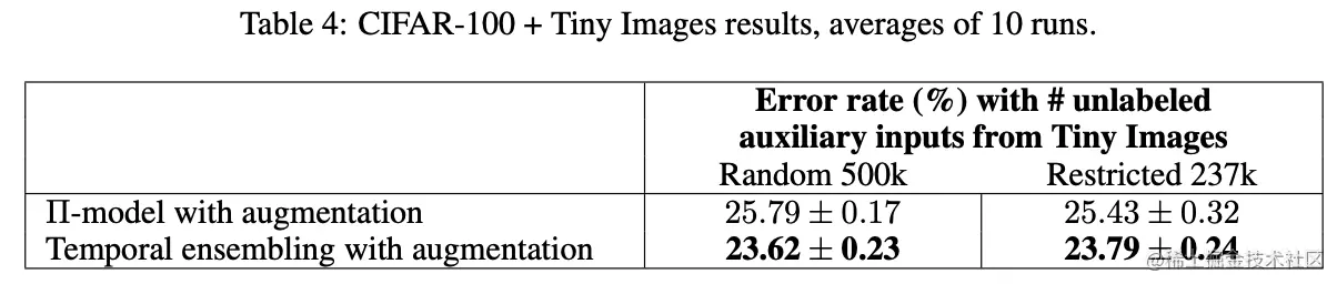 在大量半监督数据上做了消融实验,验证了Temporal ensembling的有效性