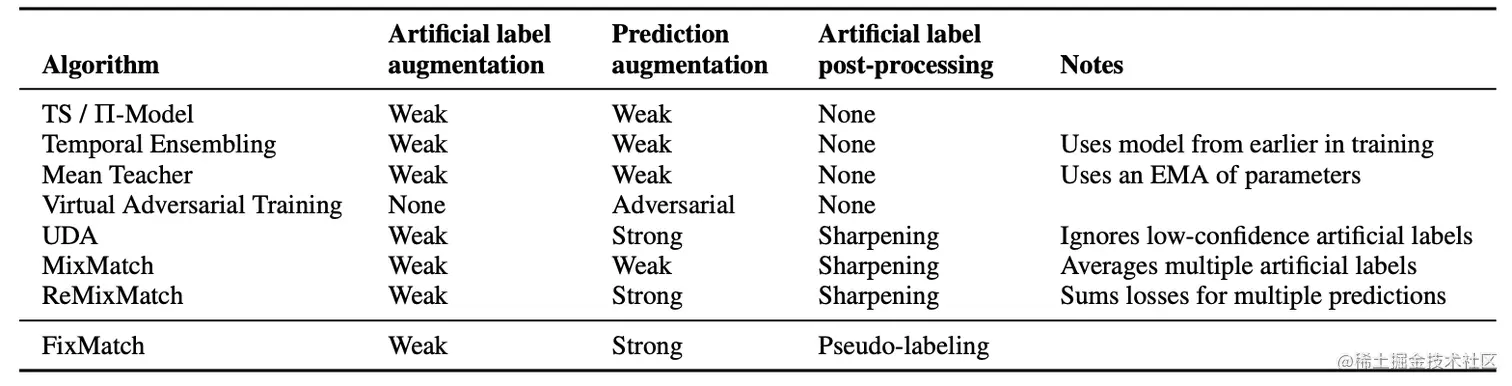- 伪标签模型: 先在有标签的数据上做训练,然后预测无标签数据的伪标签;模型的训练包括有标签的训练和伪标签的训练。例如MixMatch、ReMixmatch都是该类型的方法