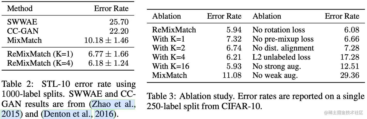 从名字上可以看出ReMixMatch是MixMatch的改进版本。MixMatch中比较重要的思想是猜测无标签数据的标签,使用最小化熵的方法做训练。