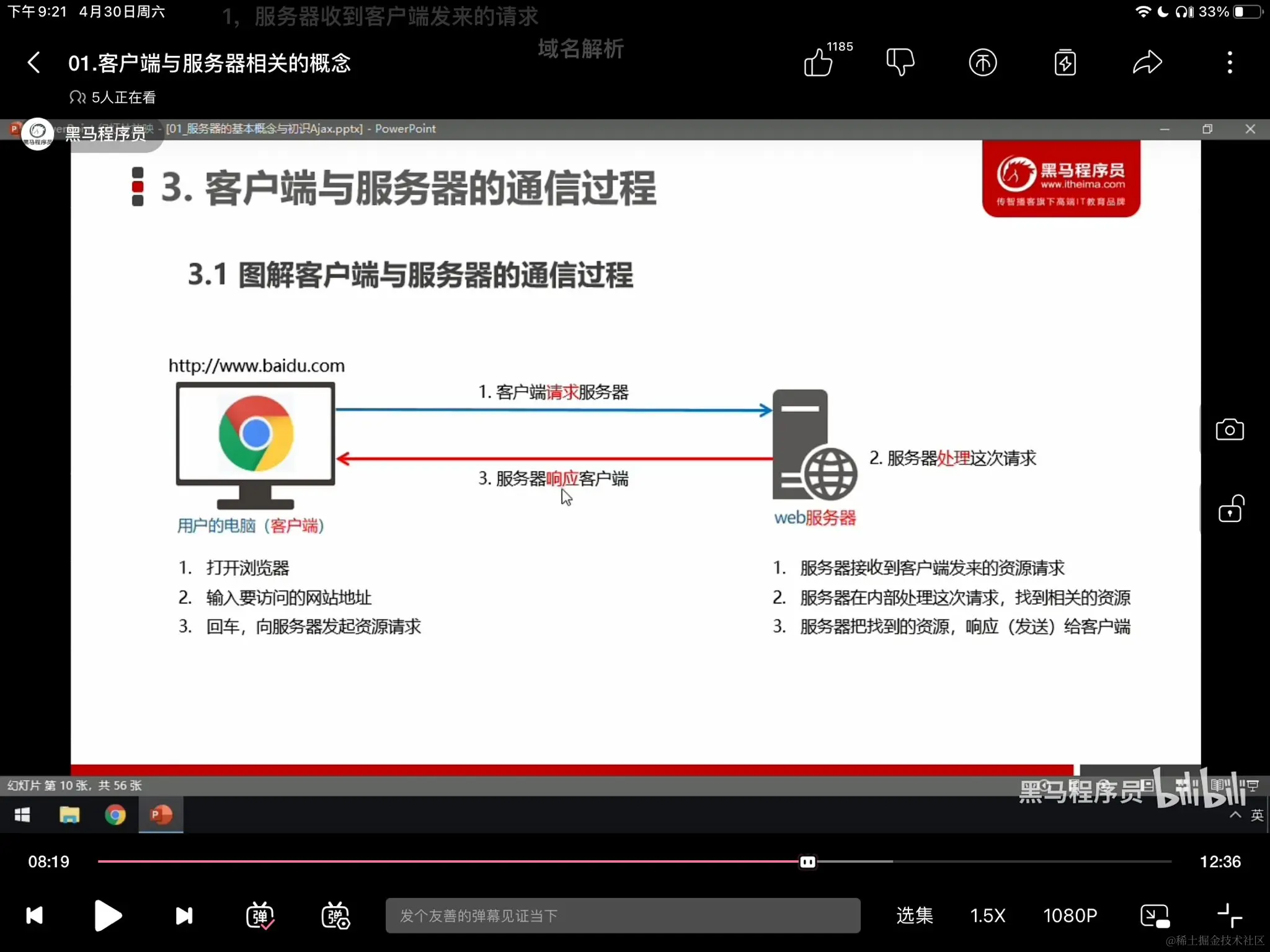 - 客户端和服务器之间的通信过程,分为 请求-处理-响应 三个步骤