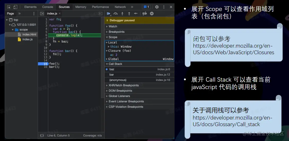展开 Scope 可以查看作用域列表 (包含闭包)