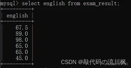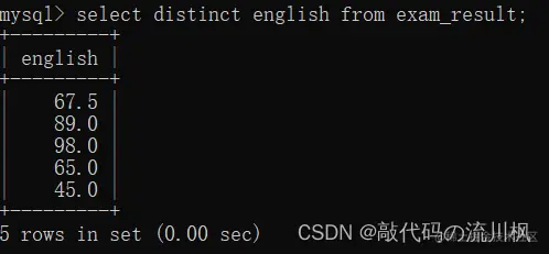 english 列有重复数据,使用DISTINCT关键字去重